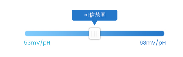 ⑦ 根據(jù)能斯特方程理想狀態(tài)下(25℃)時,理想斜率為59mV/pH,即溶液每變化一個pH值,電極就產(chǎn)生59mv的電位變化。那么理想校正下,斜率應(yīng)在59mV/pH左右。當斜率的值小于53mV/pH或者大于63mV/pH時,需要更換新的pH電極,所以當校正斜率在53~63mV/pH范圍時,結(jié)果是可信的。