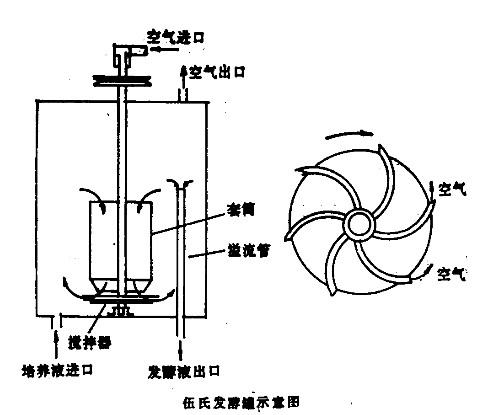 機(jī)械攪拌通風(fēng)發(fā)酵罐:包括循環(huán)式,如伍式發(fā)酵罐,文氏管發(fā)酵罐,以及非循環(huán)式的通風(fēng)式發(fā)酵罐和自吸式發(fā)酵罐等。