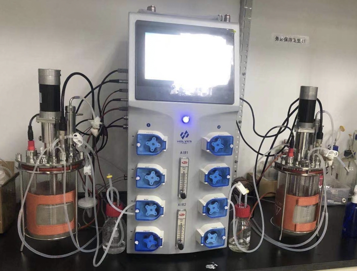 近日,霍爾斯的發(fā)酵罐得到中科院的認(rèn)同并達(dá)成合作,為其定制La220系列實(shí)驗(yàn)室雙聯(lián)發(fā)酵罐。La220系列實(shí)驗(yàn)室雙聯(lián)發(fā)酵罐采用一臺(tái)主機(jī)控制兩臺(tái)發(fā)酵罐的策略組成,主機(jī)采用La-M控制柜設(shè)計(jì)思路,匹配四臺(tái)滾輪蠕動(dòng)泵,酸泵和堿泵分開(kāi)。另外左右兩邊的罐體可以任意搭配,3L、5L、10L和15L,自由選擇??刂葡到y(tǒng)使用的是西門子控制核心,可以連接電腦,實(shí)現(xiàn)聯(lián)控。