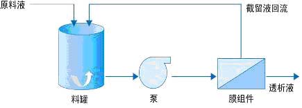 在過濾過程中料液通過泵的加壓,料液以一定流速沿著濾膜的表面流過,大于膜截留分子量的物質(zhì)分子不透過膜流回料罐,小于膜截留分子量的物質(zhì)或分子透過膜,形成透析液。故膜系統(tǒng)都有兩個(gè)出口,一是回流液(濃縮液)出口,另一是透析液出口。在單位時(shí)間(Hr)單位膜面積(m2)透析液流出的量(L)稱為膜通量(LMH),即過濾速度。影響膜通量的因素有:溫度、壓力、固含量(TDS)、離子濃度、黏度等。