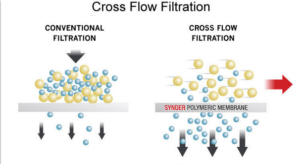 切向流過濾(TFF),也叫錯流過濾(CFF),是指液體流動方向與過濾方向相垂直的過濾形式。液體流動在過濾介質表面產生剪切力,減小了濾餅層或凝膠層的堆積,從而保證了穩(wěn)定的過濾速度。